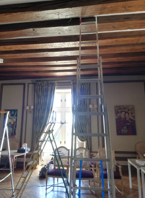 En tant qu’électricien en Indre-et-Loire, nous intervenons régulièrement sur des pièces avec hauteur sous plafond importante, poutres anciennes, supports spécifiques ou arrivées électriques à adapter.
